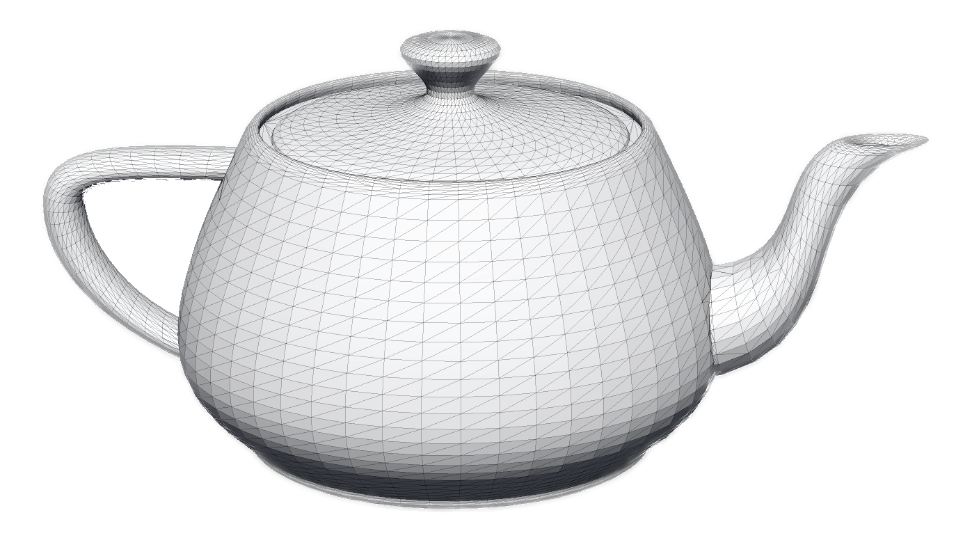 Notice how the entire teapot is composed by triangles, regardless of how detailed the mesh area is. The areas which are less detailed—like the center of its side—have a smaller concentration of triangles. Highly detailed areas—like the lid’s knob—have a higher concentration of triangles.