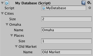 Let’s choose a (slight biased) model to implement as our example: a script to keep all the data to an investigation game which contains numerous cities, each one containing several places. Sounds pretty easy and straightforward, so let’s do it naively by creating MonoBehaviours: one for the database, one for the cities and one for the places. That should work: